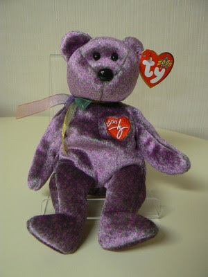 Ty Beanie Baby 2000 SIGNATURE BEAR Original Purple W/ Multi Color Bow